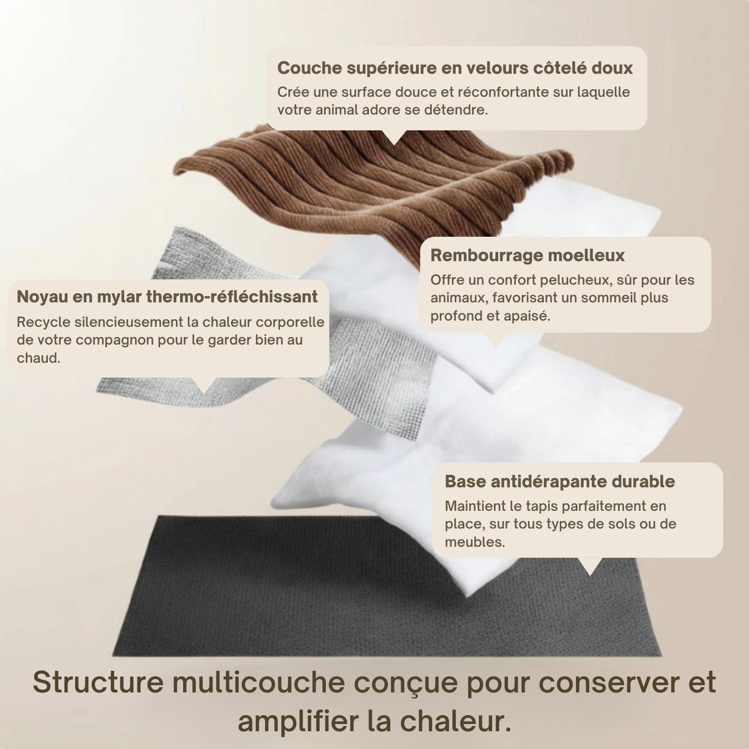 Ce tapis auto-chauffant leur offre exactement cela : un refuge doux et apaisant, sans électricité, qui conserve leur chaleur corporelle.